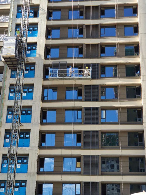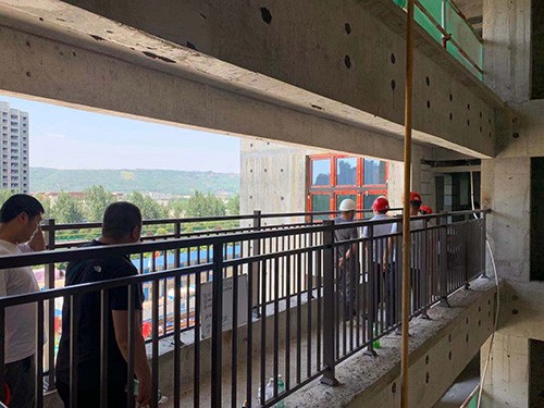 隨后,一行人來到我司參與的在建項(xiàng)目華潤置地·曲江九里考察。曲江九里項(xiàng)目我司承包陽臺(tái)欄桿、空調(diào)支架、百葉類工程,和接下來雙方要合作的工程是基本一致的。