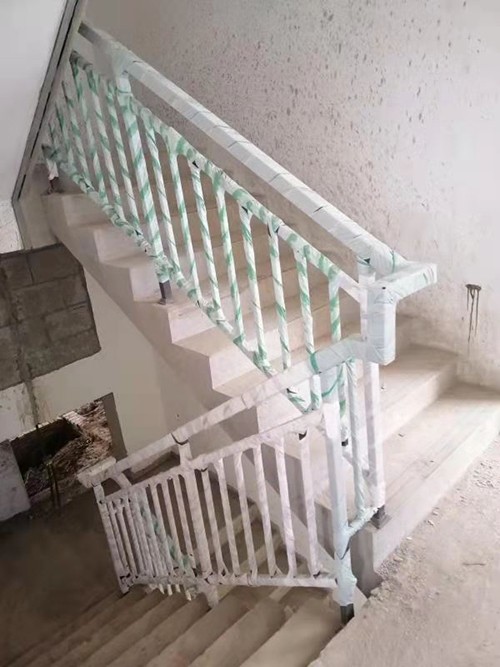 泰鑫人一如既往的遵循工序合理化原則,合理規(guī)劃工序,避免多工種在同一作業(yè)套內(nèi)交叉施工。所以在生產(chǎn)加工到安裝的每一個環(huán)節(jié)都非常注重細節(jié)保護,在成品制作完成時妥善堆放整齊,裝車清點時一般會用紙板、墊木或棉布墊實,保護欄桿不被磨損,安裝后及時采用塑料薄膜仔細纏繞,確保成品每個細節(jié)完美無瑕。
