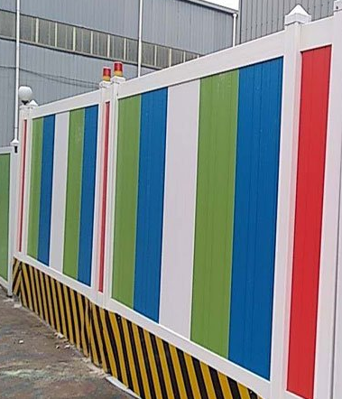 地鐵圍擋由基座、立柱、橫桿、彩鋼板、排水設(shè)施、降塵設(shè)施、照明燈具、裝飾配件及宣傳欄等部分組成。面板一般選用高強(qiáng)度彩鋼板,要求耐磨損性和耐腐蝕性好,因?yàn)槭褂梦恢锰厥庑砸蠹烙^、功能于一體,要無褪色、變黃、脫皮、裂紋、起泡、翹曲等現(xiàn)象,使用壽命較長安全可靠。如被毀壞可拆換解決,無需報(bào)廢,再利用程度高。