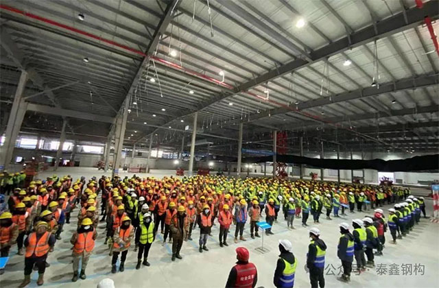 項目建設期間,泰鑫鋼構團隊遭遇多重考驗:針對多工種交叉作業(yè)的復雜工況,創(chuàng)新實施"分區(qū)管理、隱患不過夜"制度,每日安全巡查整改率達99.99%。這些舉措不僅彰顯了泰鑫鋼構在惡劣條件下的工程履約能力,更以毫米級安裝精度詮釋了"質量是生命線"的深刻內(nèi)涵。