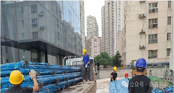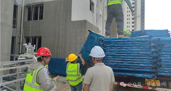走進(jìn)圣達(dá)菲公館項(xiàng)目現(xiàn)場(chǎng),泰鑫鋼構(gòu)的施工區(qū)域始終是一片忙碌景象: