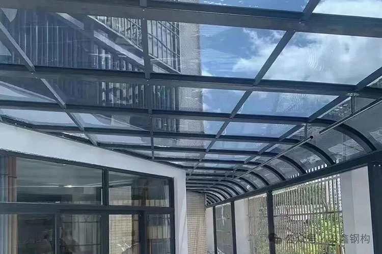 采用鋼鋁復(fù)合結(jié)構(gòu)+超白夾膠玻璃,搭配隱藏式排水槽設(shè)計;